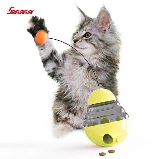 3. The tumbler design makes the cat more interested in playing with this product. With a slight push, the product will leak snacks during the swinging back and forth.