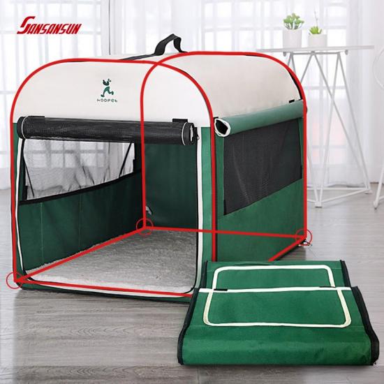 This is a dog delivery room, a tourist tent, an indoor dog house, and a car travel bag.