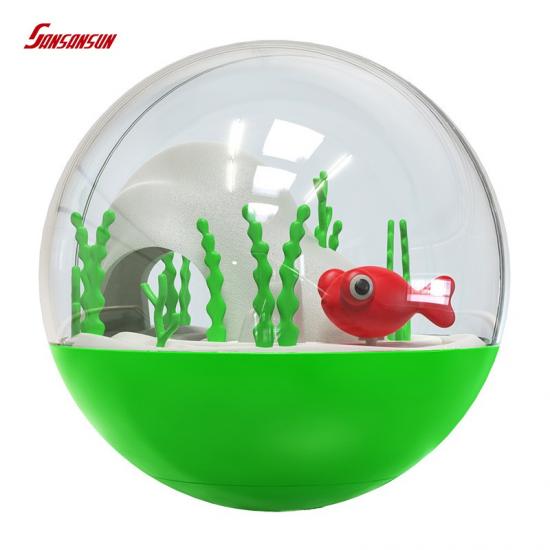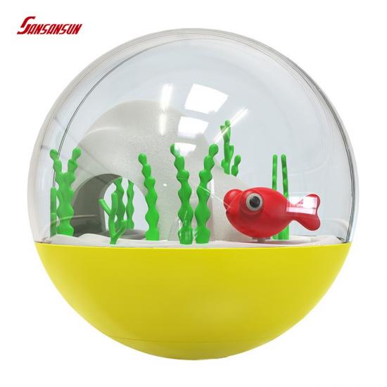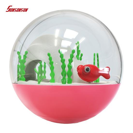 1. This toy has a total of 4 colors, and the transparent sphere has a marine effect scene. Turn on the switch, and the fish can swim in a circle in the transparent sphere.