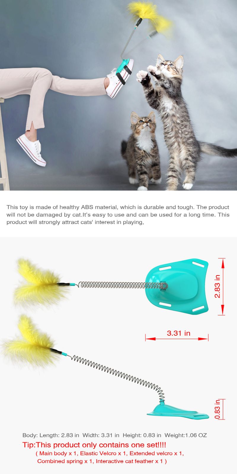 1. This product is installed on the top of the shoe, and the feathers on the top of the product move through the irregular swing of the foot and the spring to achieve the effect of attracting the cat's attention.
