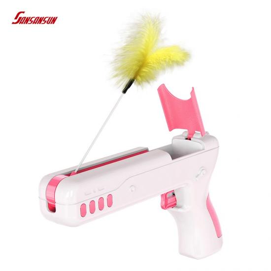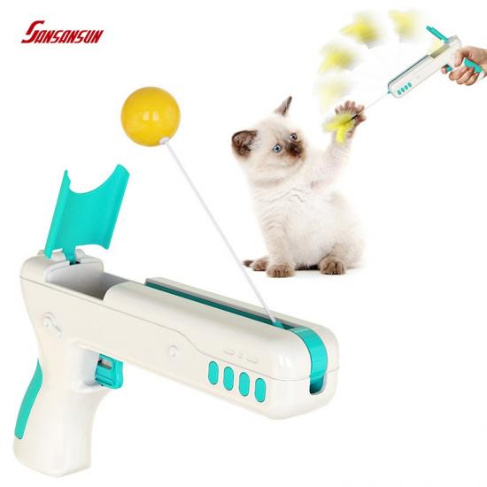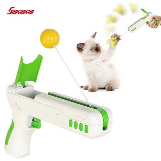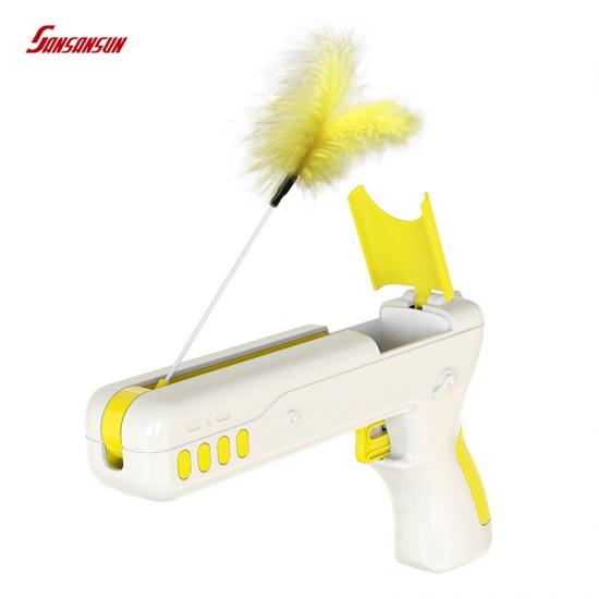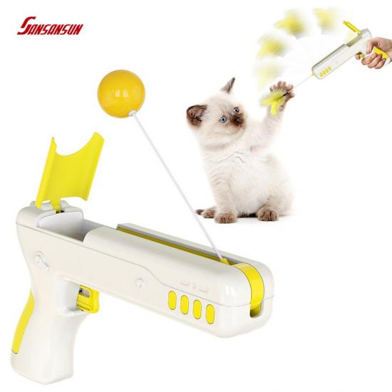 2. Release the trigger to tease the cat ball/feather to automatically rebound to the body of the toy, which can more attract the cat's play interest in the process of popping and rebounding