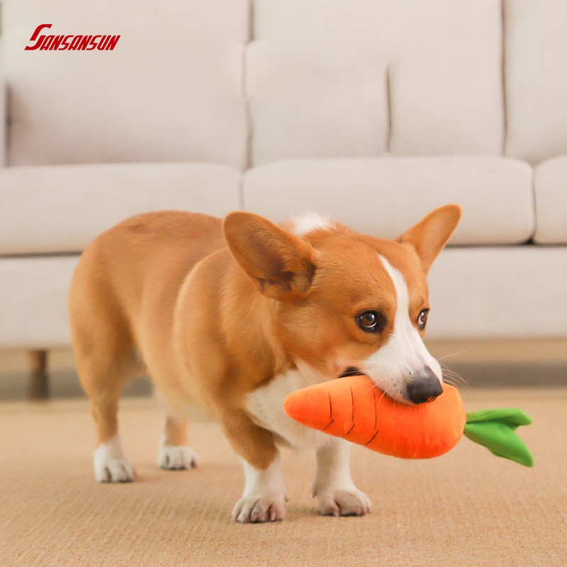 1.This Dog plush toy is in the shape of a carrot and is made of super soft fabric. It is available in two sizes to fit any dog.